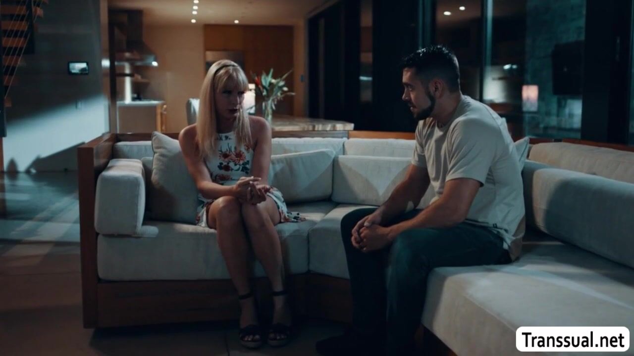 Stepson helps his shemale stepmom Jamie French find her wedding ring on the couch.After finding it,they start kissing each other passionately.Next is,he lets her throat his hard big cock and in return,he bareback fucks her ass so deep and hard.