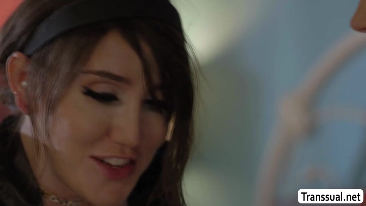 Hot TS and her stepsister are on the bed kissing each other passionately.After they remove their lingeries and start sucking their nipples.Next is,she lets stepsister throat her tranny cock and fucks her pussy in return.