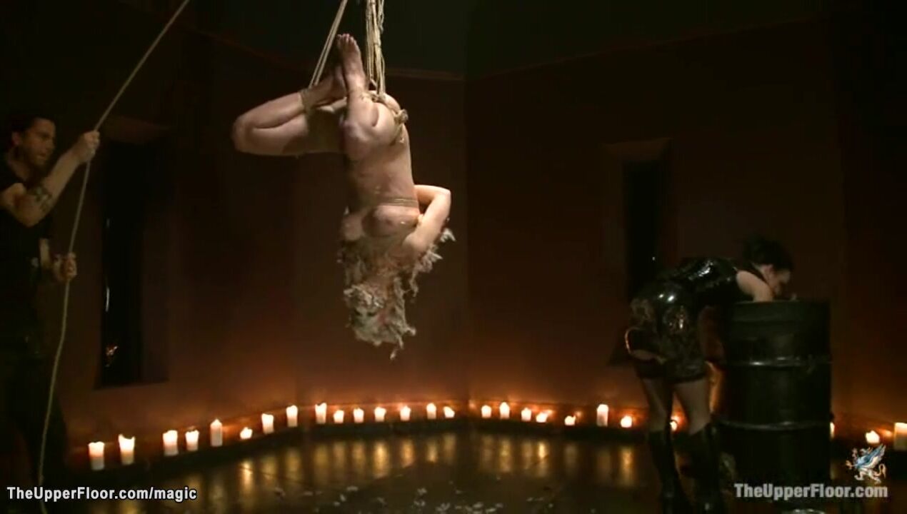 Bound big tits blonde slave Cherry Torn in stockings is bound in bed and hot waxed by master The Pope then fucked by lezdom Sophie Monroe