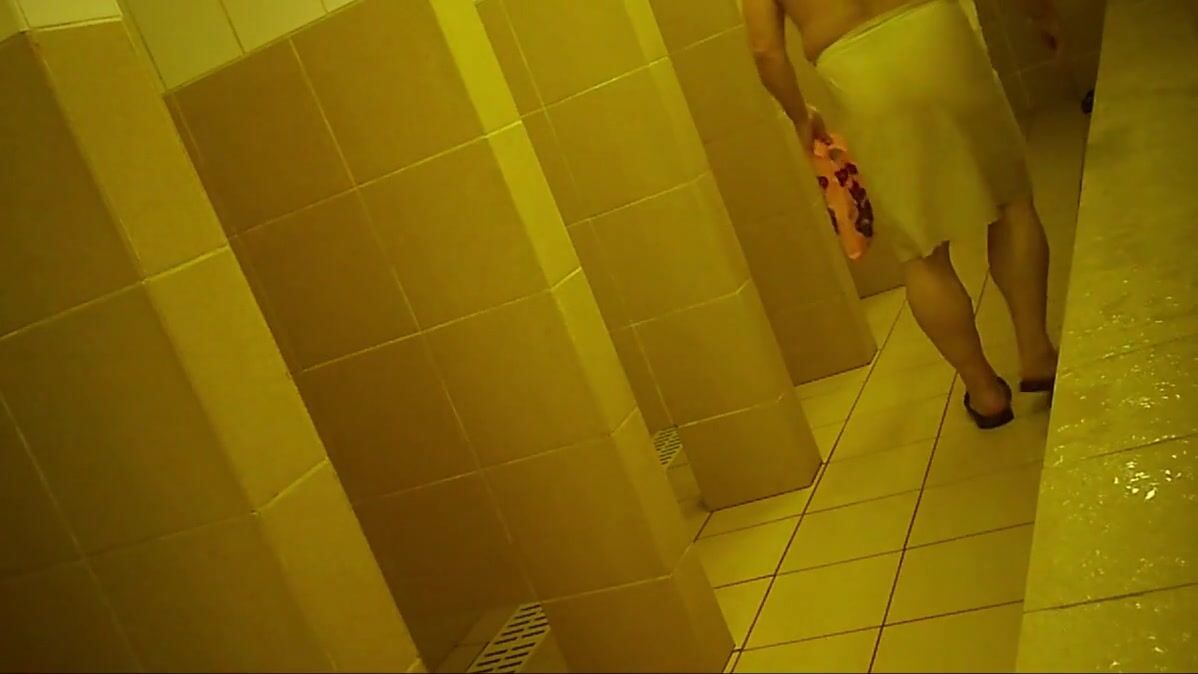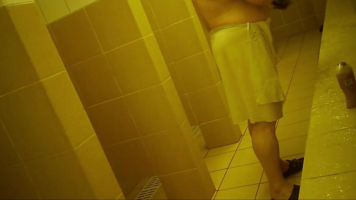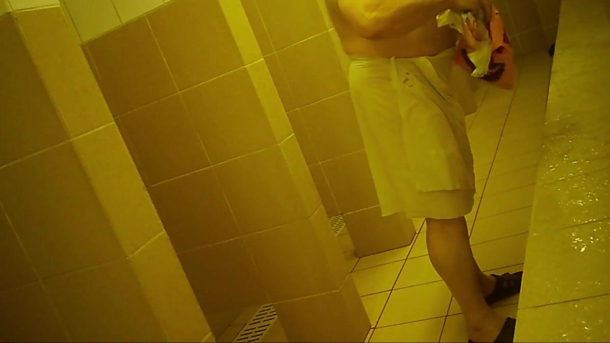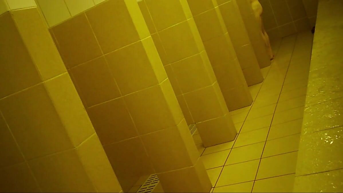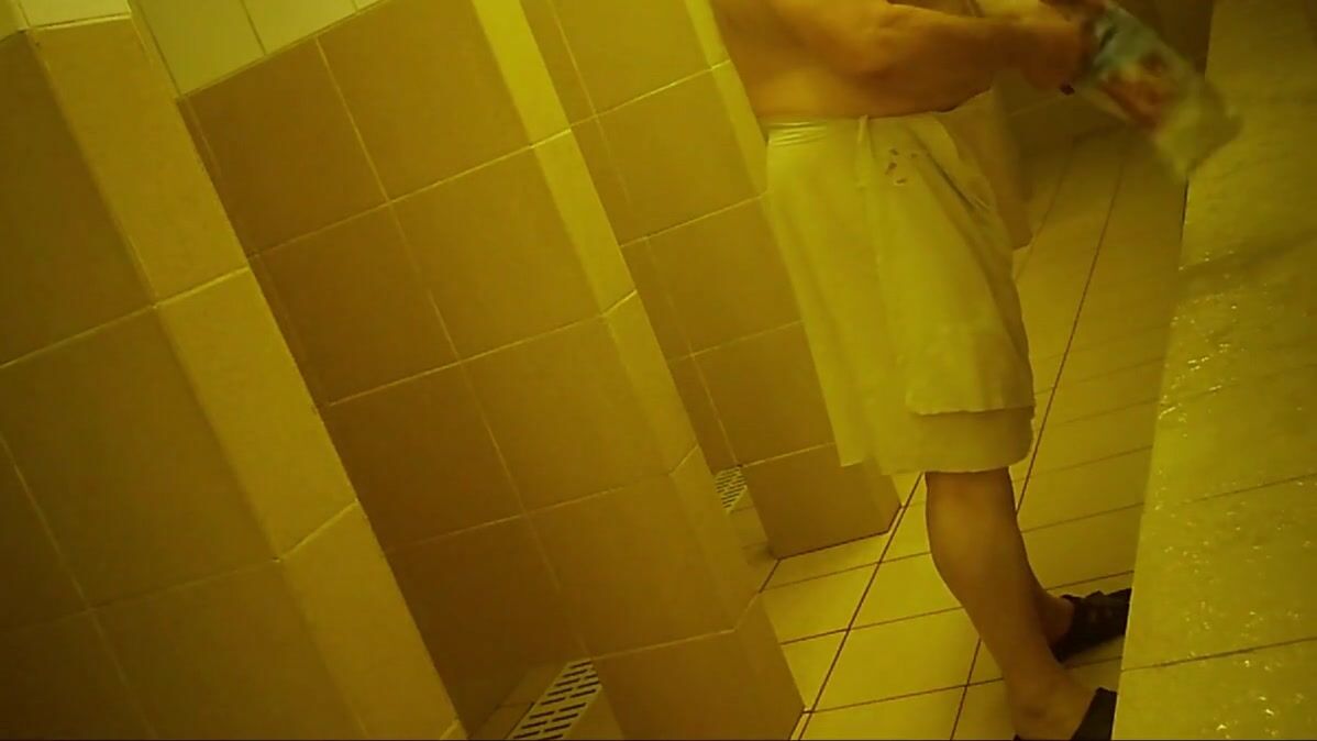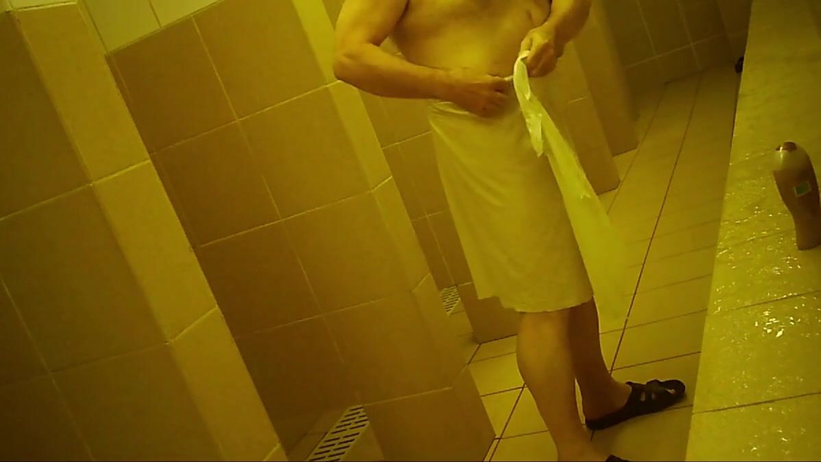 Naked men in public pool shower