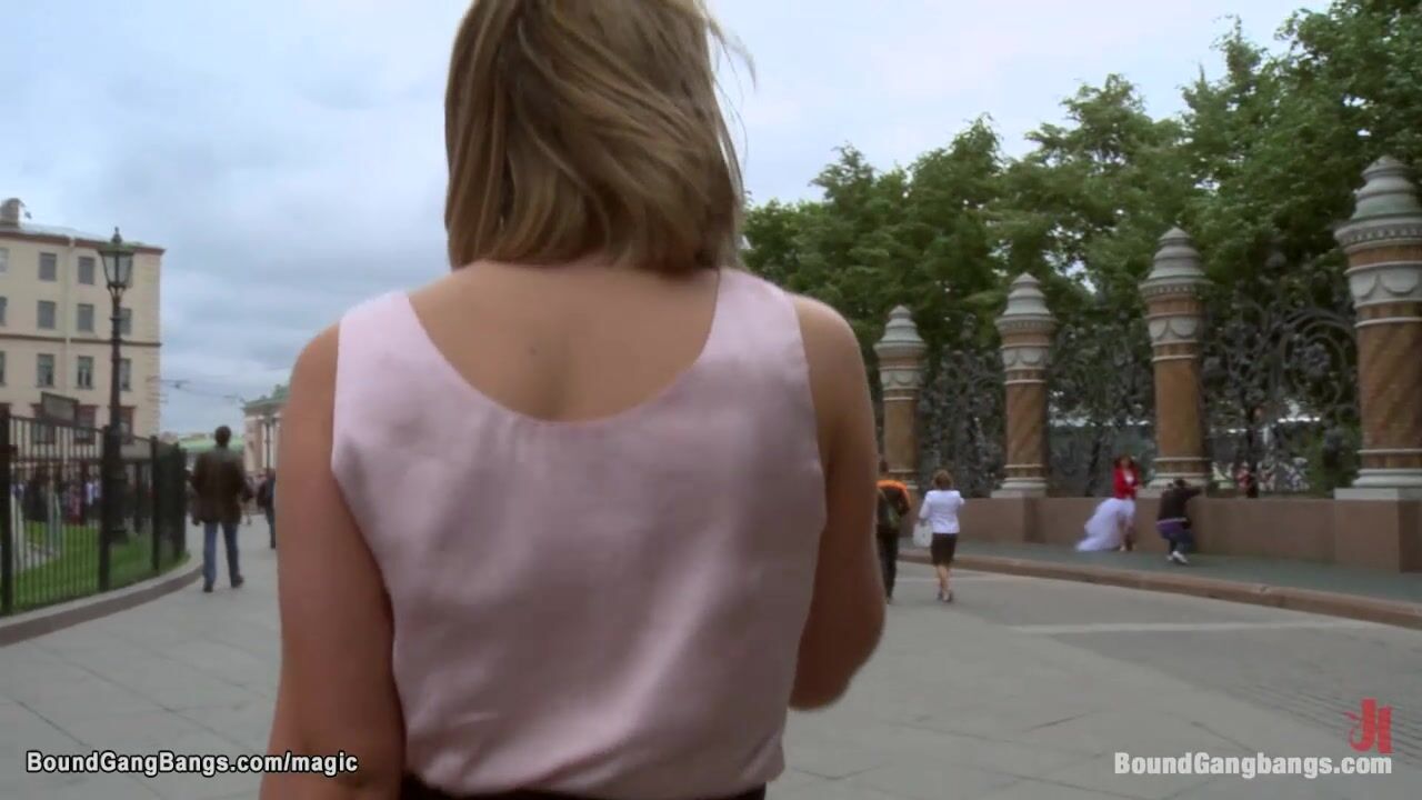 Huge tits blond Russian girl Dominica Phoenix getting shower and masturbating then walking down the streets and later double penetration fucked