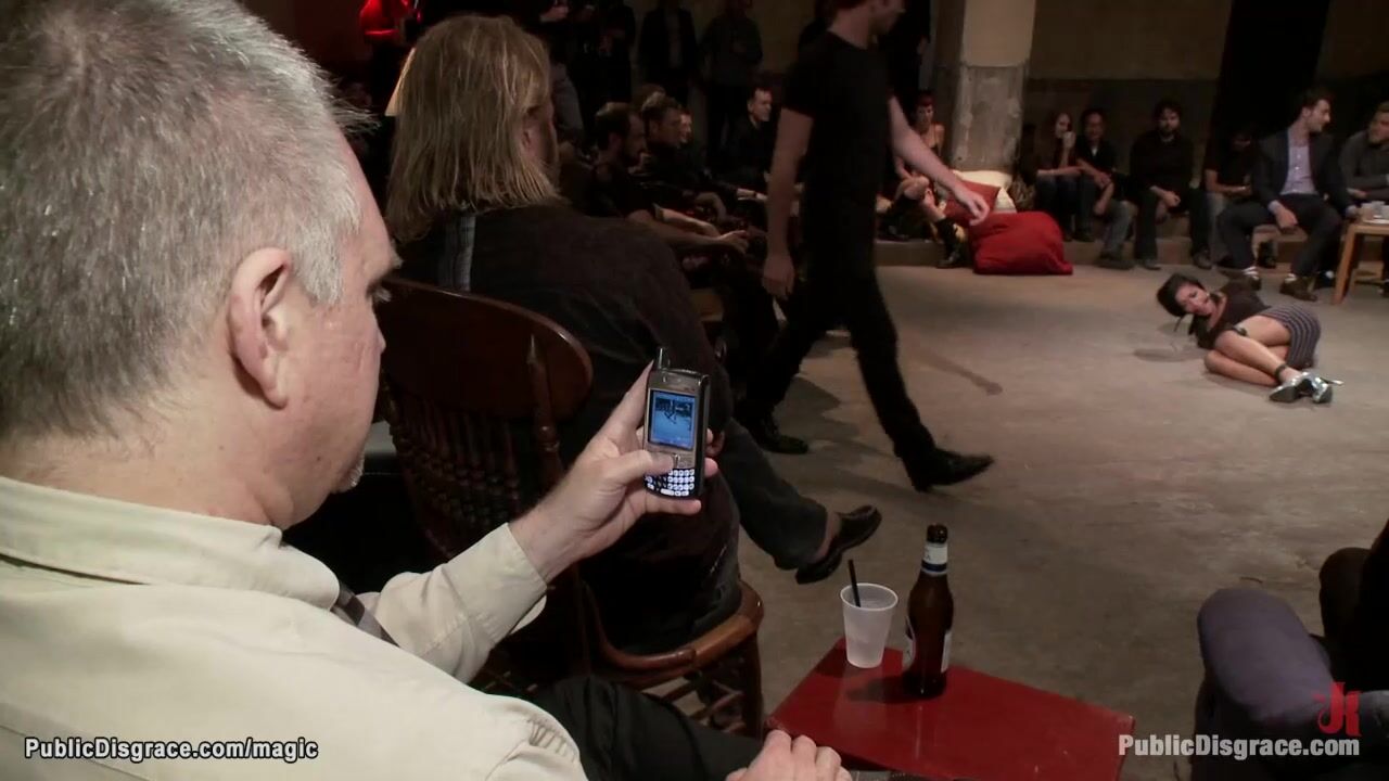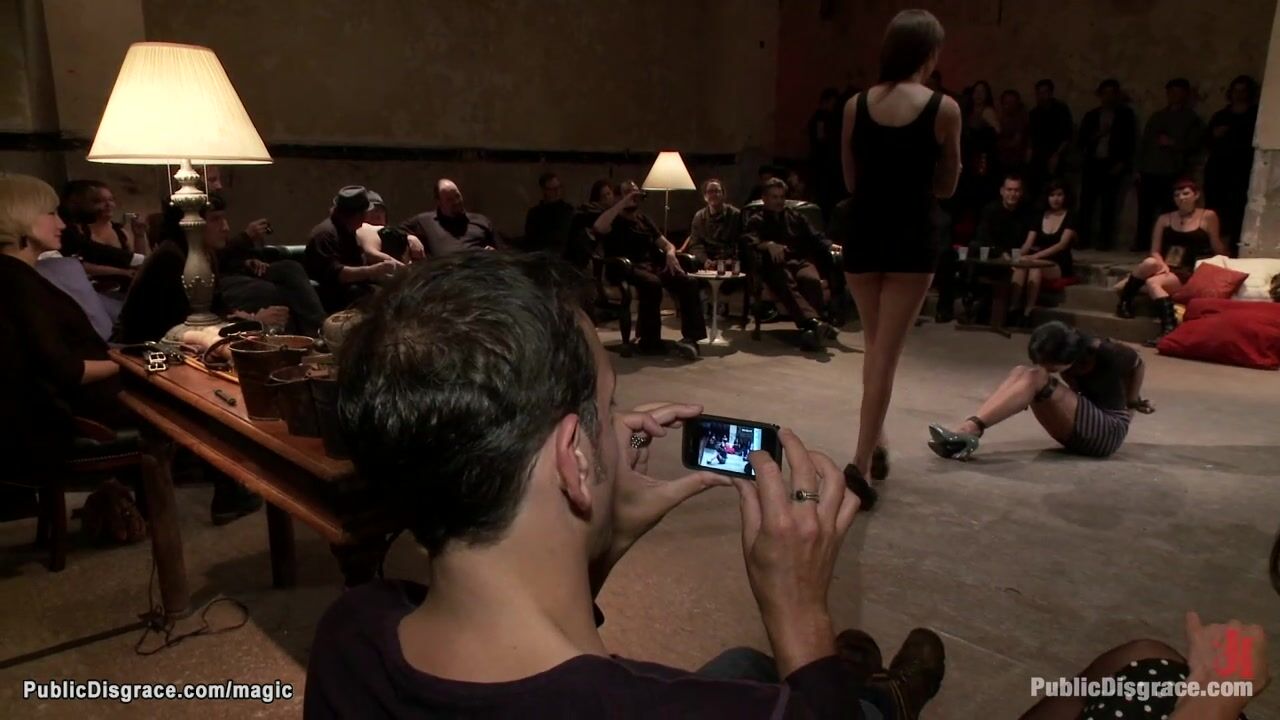 Hot little mixed brunette slave Skin Diamond is bound by dom Princess Donna Dolore and humiliated then rough fucked by big cock James Deen in public