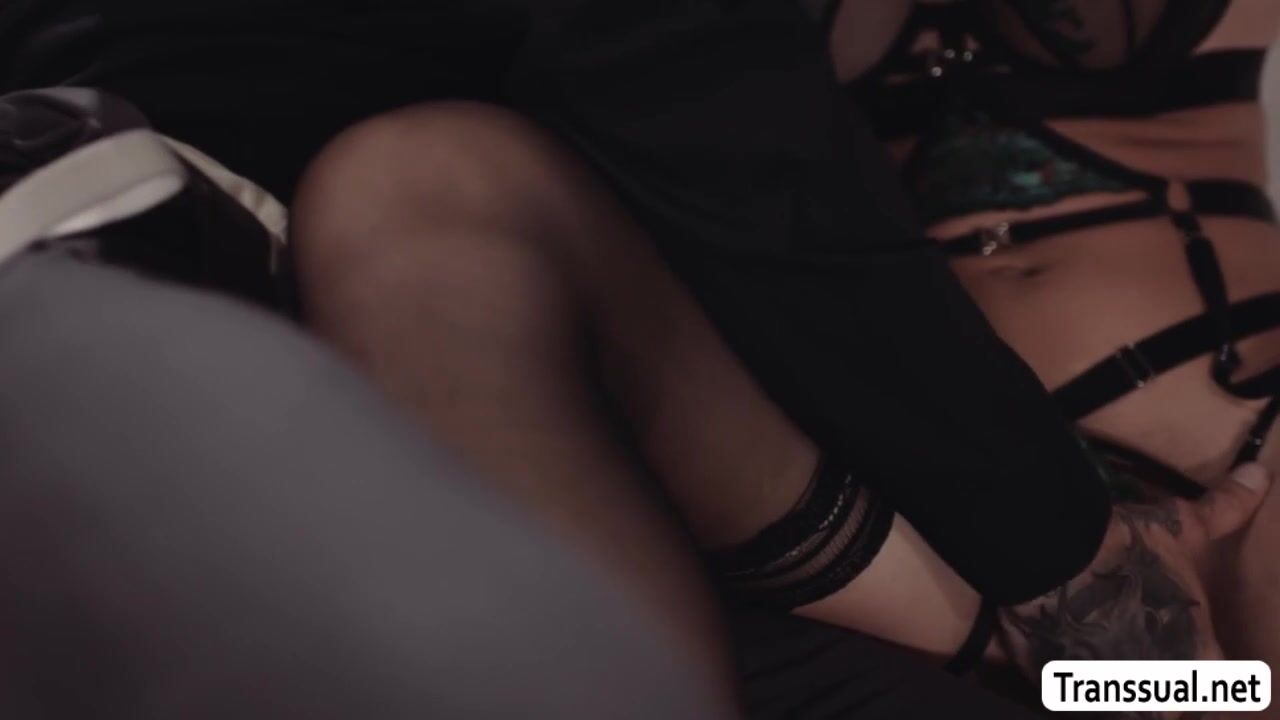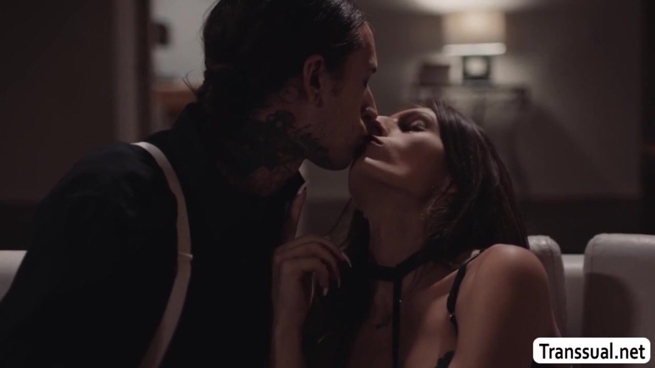 Straight dude is on the couch taking selfies while his TS mistress is in the back watching.After that,they start kissing each other passionately and then she throats his dick.In return,the guy licks her ass first and fucks it so hard.