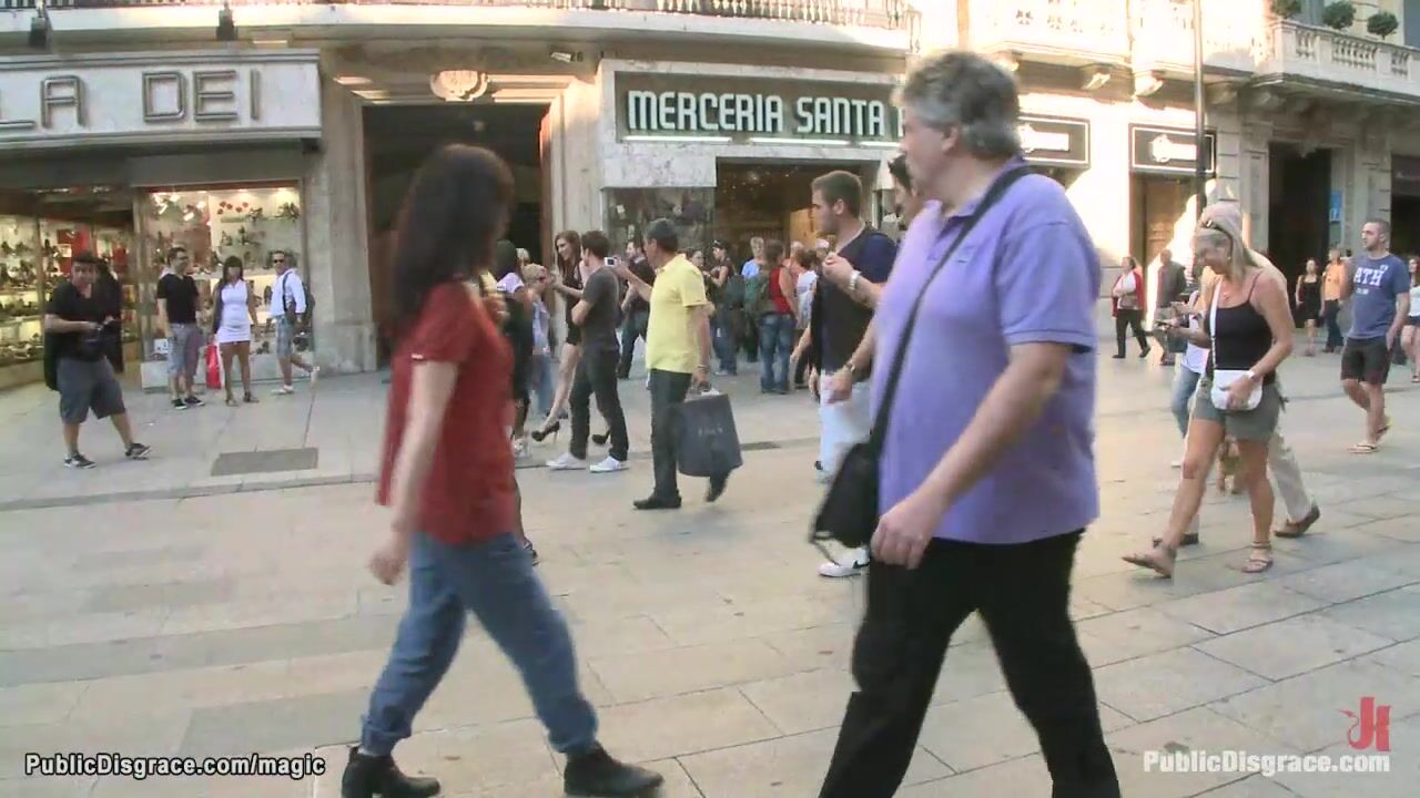 Naked big boobs brunette Latina babe Yoha Galvez walked in the crowded city streets by Princess Donna Dolore and James Deen then anal fucked in secluded place
