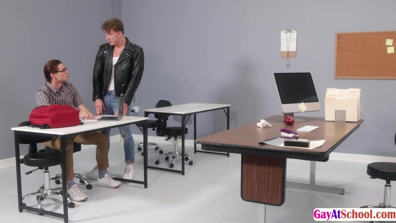Handsome bully enjoys bareback fucking his nerdy classmate