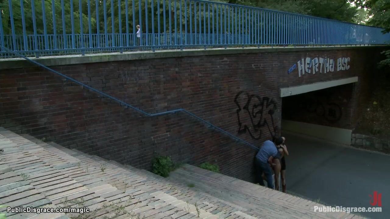 Hot MILF lezdom Princess Donna Dolore exposes German babe Black Lady in public streets then big cock Tommy Pistol fucks her in various places all over the European city
