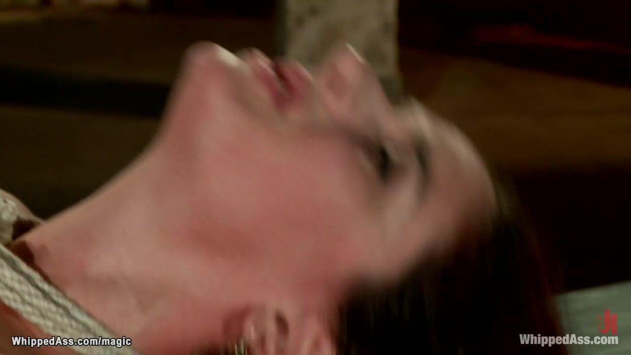 Bound brunette lesbian slave Sheena Ryder gets stunning ass caned and whipped then anal fucked with dildo on a stick and strap on cock by MILF lezdom in latex Felony