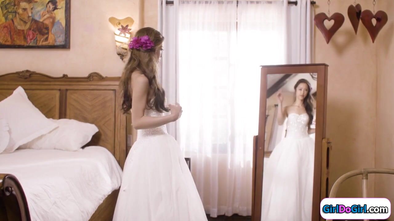 Small tits lesbian and her former asian bff get into a fight on the Asians wedding day.She confesses her feelings and kisses her gf.She sucks her boobs and gets her shaved pussy licked.The petite brunette spreads to get masturbated and oraled