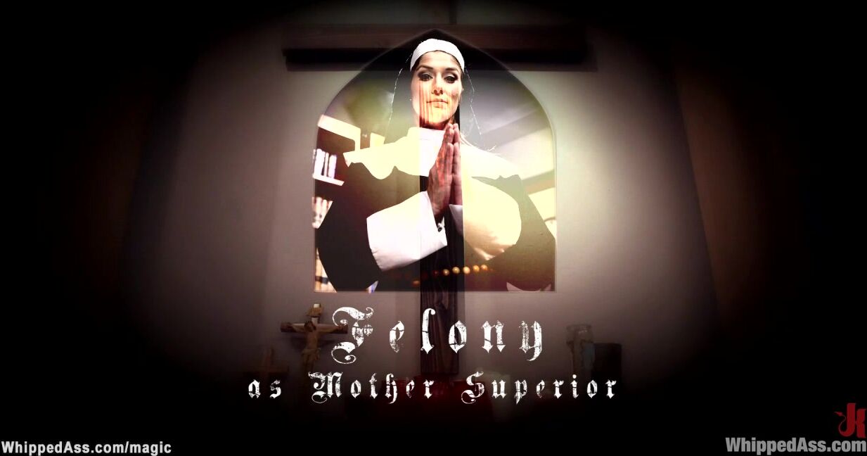 Lesbian coeds Jodi Taylor and Sarah Shevon are bound by big tits MILF nun Felony and mounted on sybian and whipped in lesbian taboo sex in the basement of the Church