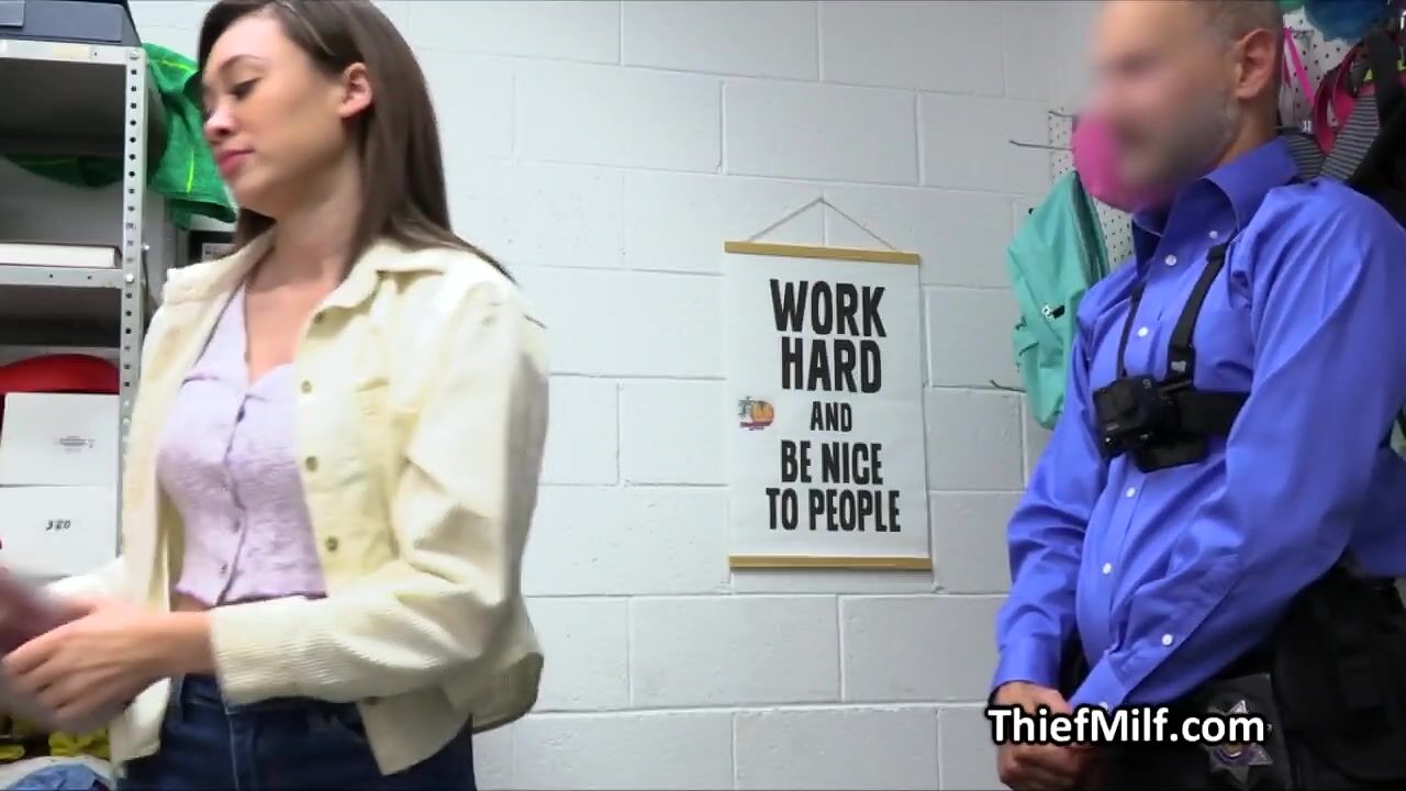 Busty Asian teen babe Madi got busted for stealing some textbooks. She ends up in the backoffice blowing the mall cop with her big tit slutty teacher!