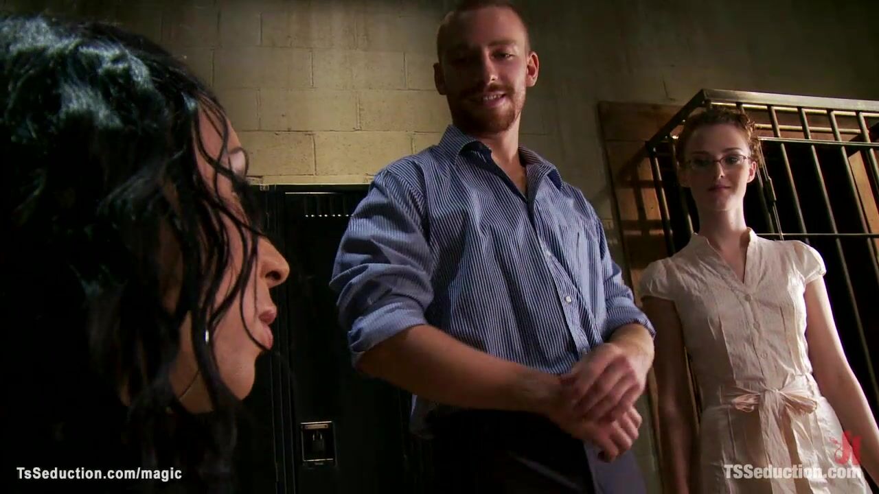 Bf Sebastian Keys brought hot red head girlfriend Michelle to audition of big cock brunette shemale dom Honey Foxxx and gang banged her in threesome bondage