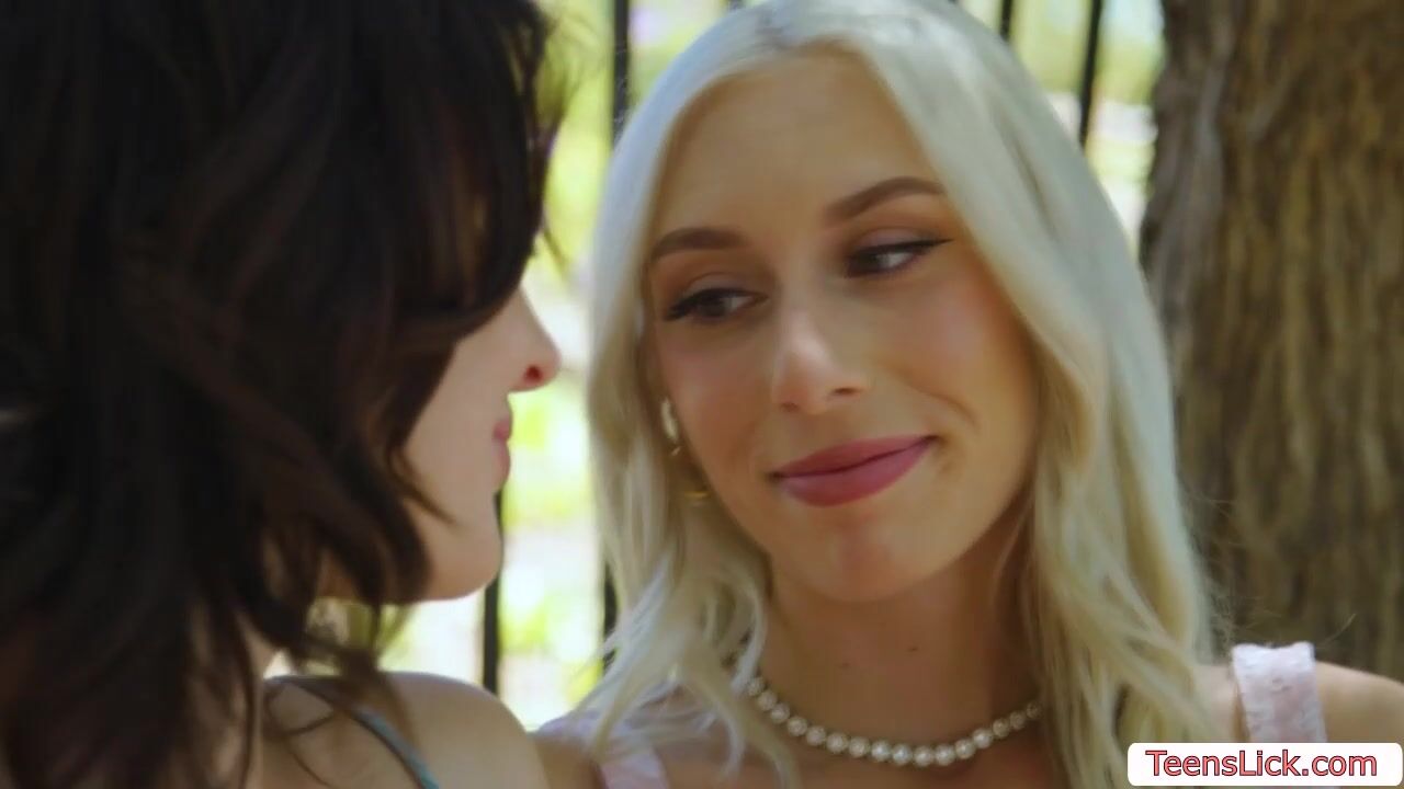 Blonde teen and her girlfriend are on the swing kissing each other.After that,they go inside the house and continue kissing each other.Next is,they get naked and lick their pussies before she lets her girlfriend fuck her pussy using strap on.