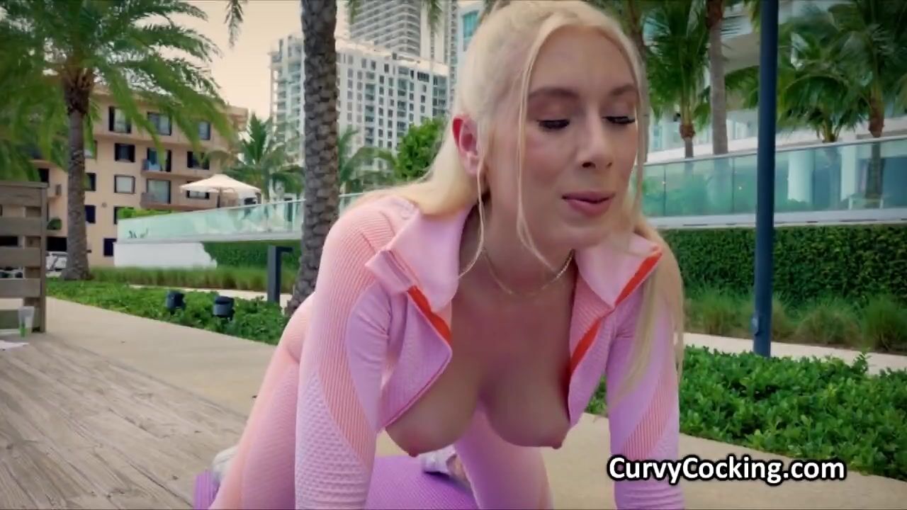 Working out outdoors is super awesome and health. But you can also pick up some hot ladies out there.. like Kay who loves to show off her big boobies!