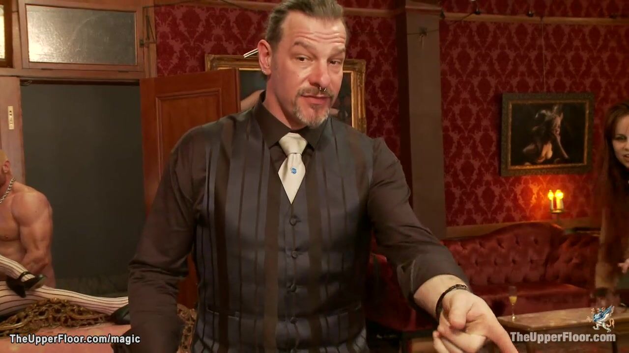 Senior slaves Bella Rossi and Juliette March together with ebony Nikki Darling are tormented and big cock fucked in pussies and throats at bdsm orgy party in the Upper Floor