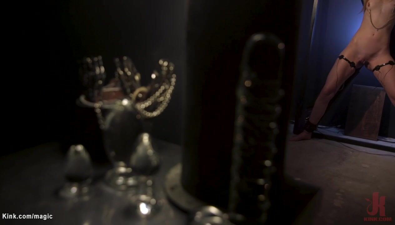 Skinny small tits blonde slave Alexa Grace in bondage tormented by master Ramon Nomar then tight pussy fucked by his huge dick from behind while laying on padded horse
