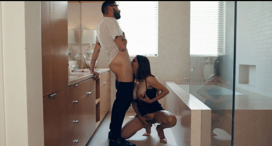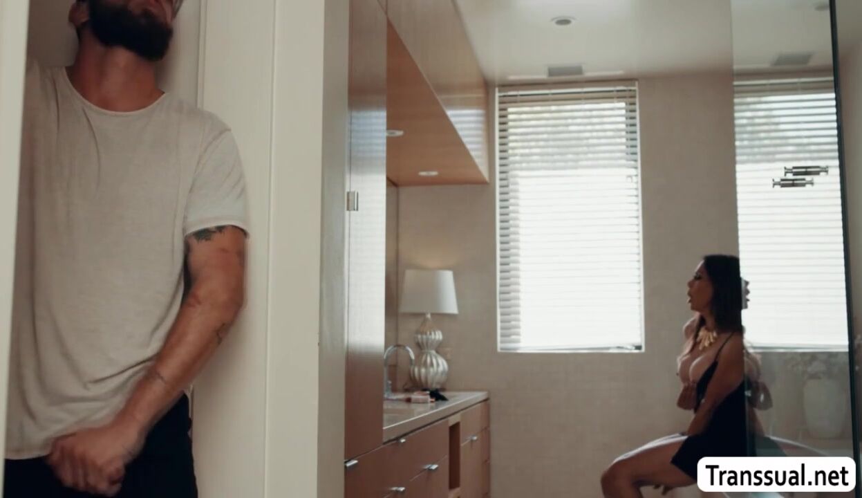 Slut MILF shemale is jerking off her shecock in the bathroom.After that,her stepson is watching her and instead of getting mad,she throats his hard big cock passionately.In return,her stepson bareback fucks her ass so hard.