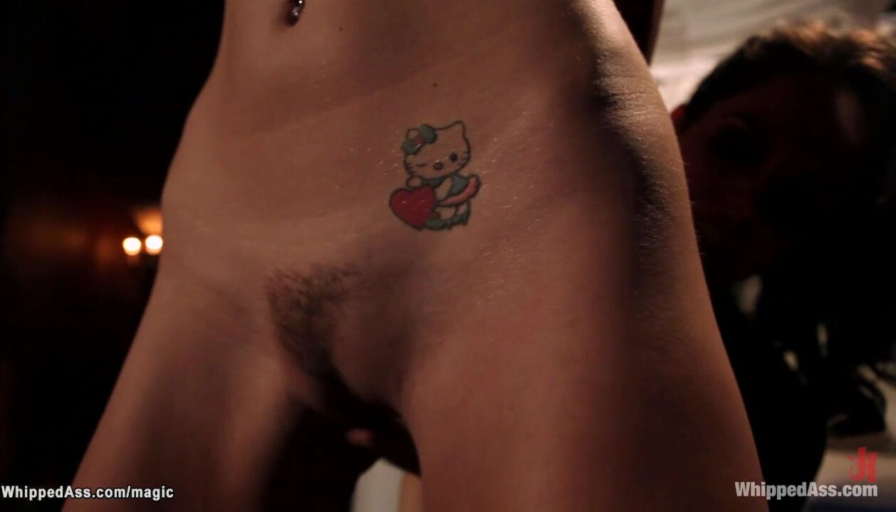 Stunning red head lesbian babe Monique Alexander is bound down on her knees and blidfolded then gets whipped and pussy fondled by lezdom Bobbi Starr then fisted
