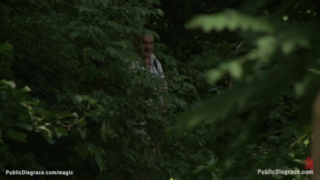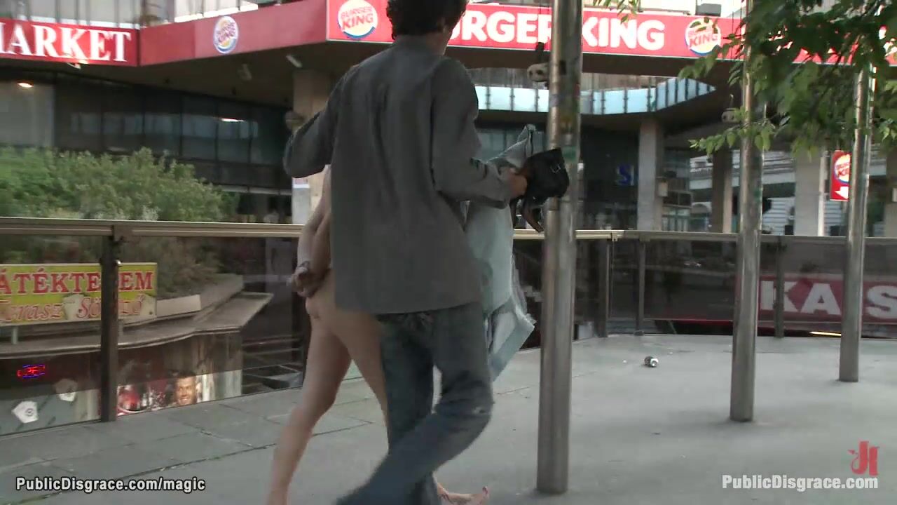 Euro babe Lucy Bell is bound and naked and barefoot walked through public streets then gagged and big dick fucked by master Steve Holmes in various places