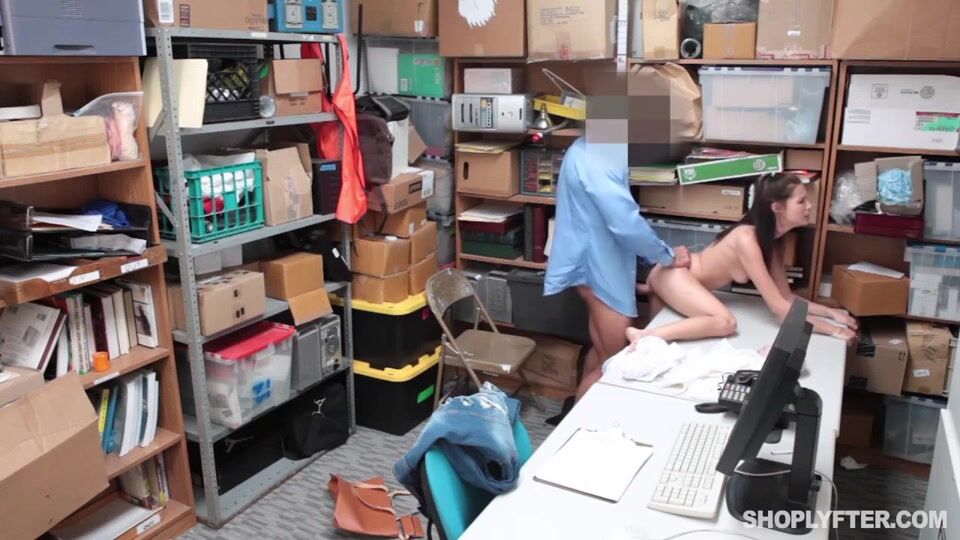 Curvy teen thief faces cock at the backoffice