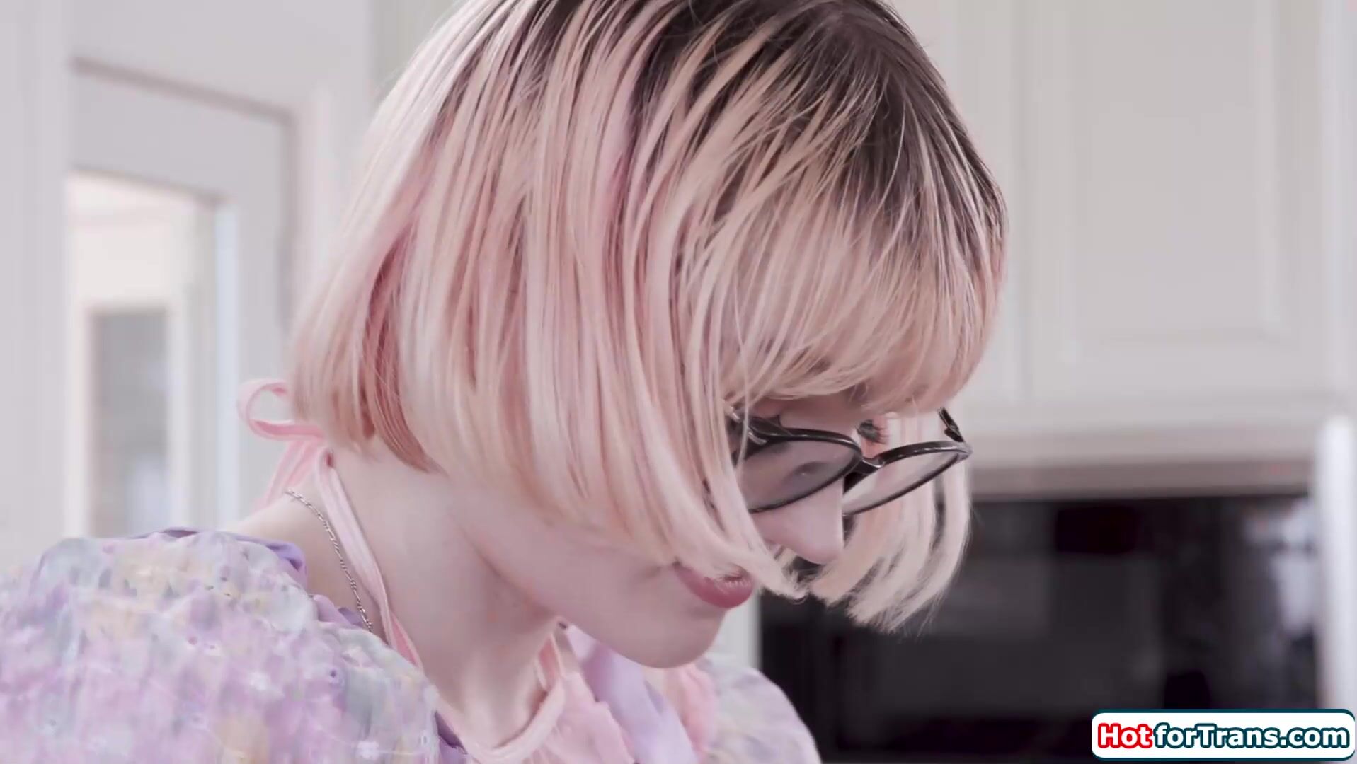 Small tits trans Claire Tenebrarum walks in on busty blonde shemale roommate Jamie Kelly masturbating.The tgirls get naked and kiss.The big tits ts gets her dick sucked and Claire handjobs both tranny cock.The transsexual rims and bareback anal fucks