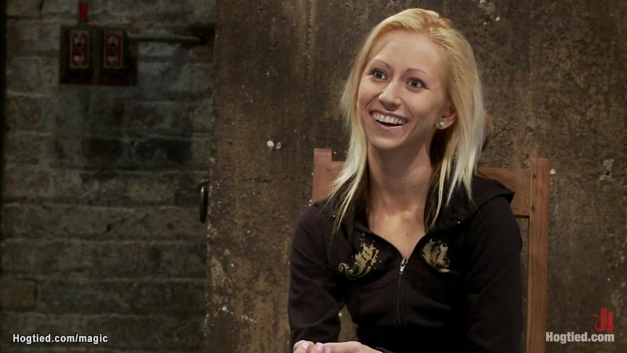 Blond hogtied and pulled in the air