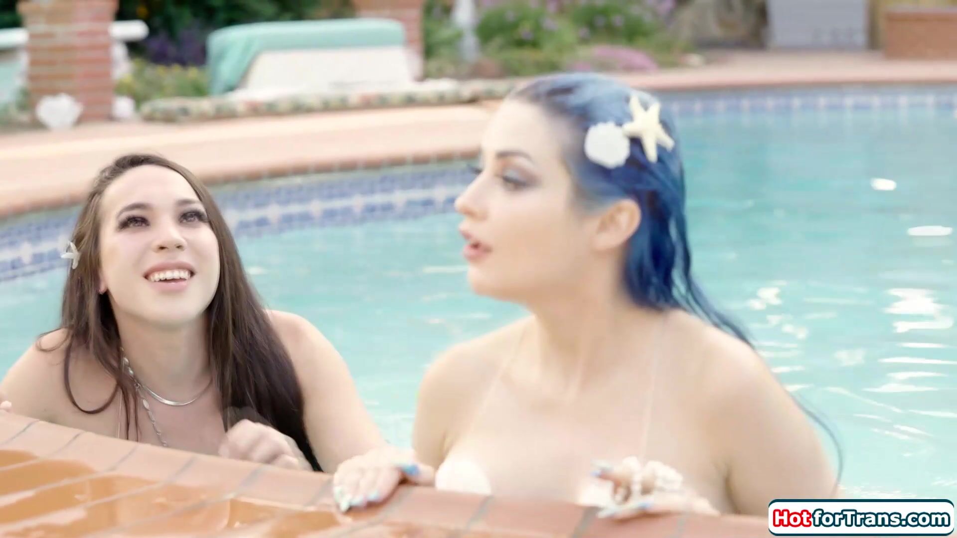 Tgirl mermaid Kasey Kei licks and fuck busty babe Jewelz Blu