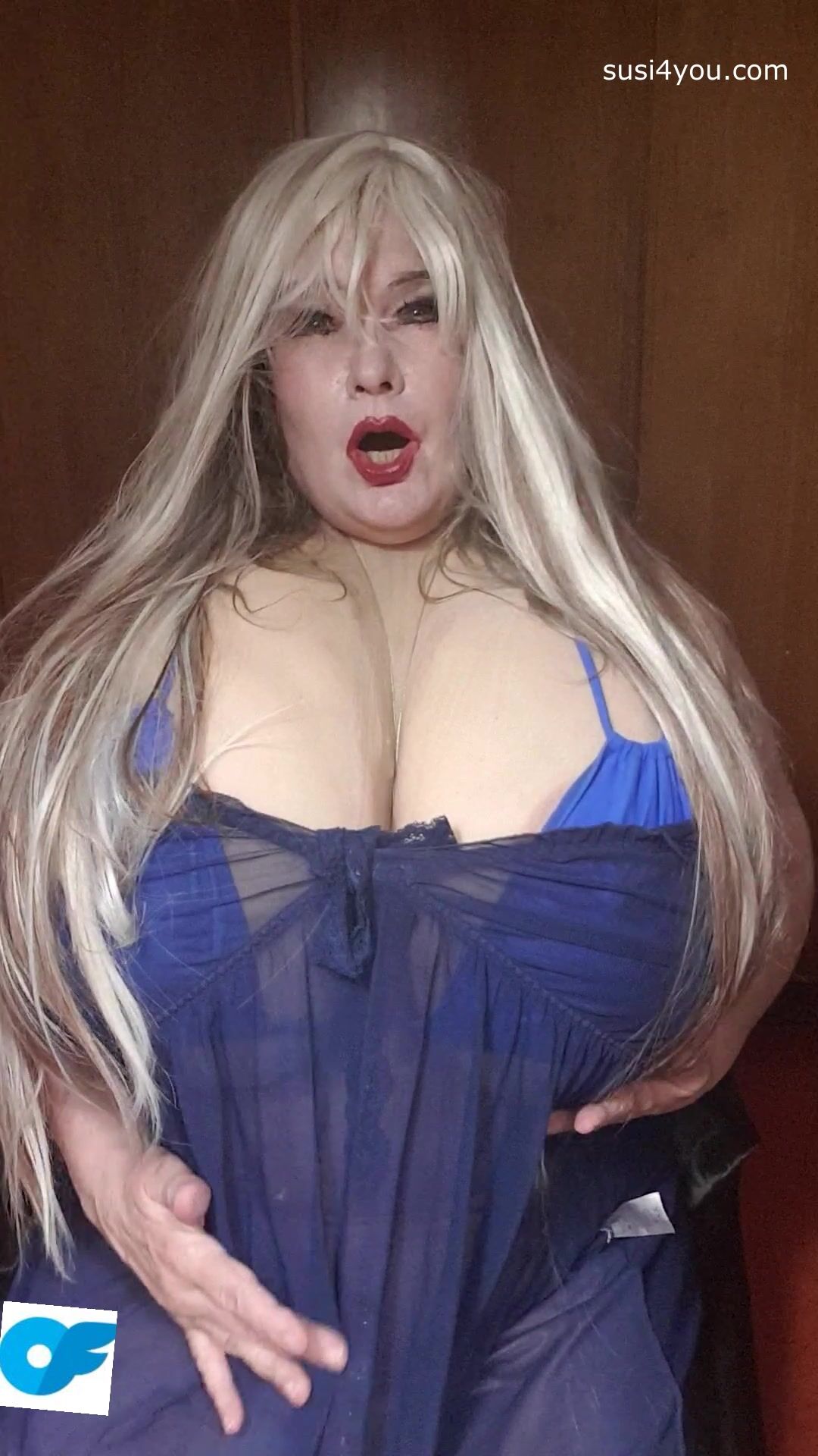 Susi is teasing in blu lingerie showing cup k tits and bouncing them