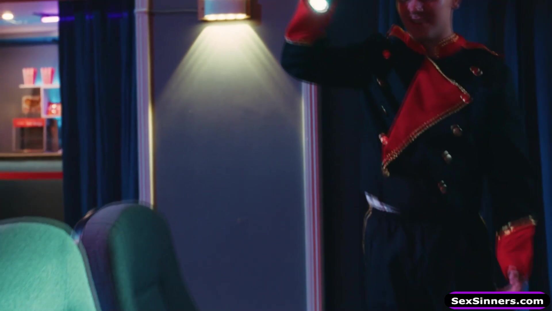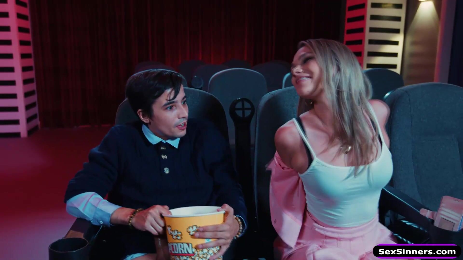 Petite small tits gf is bored and takes out bfs cock in cinema.The blonde babe sucks when a couple notices and leaves.With the cinema to themselves the guy kisses and sucks his gfs boobs.She gives a blowjob and gets her shaved pussy licked and banged