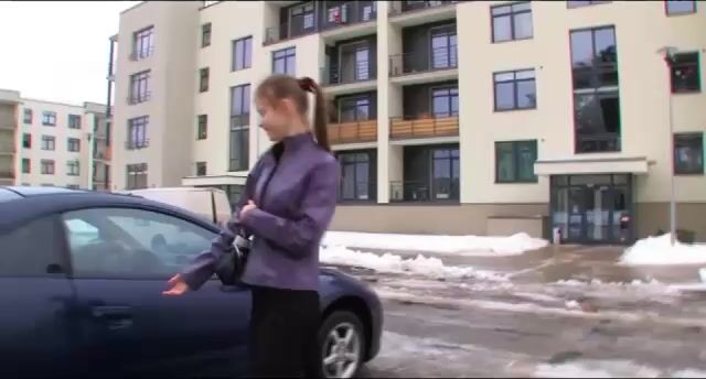 Petite girlfriend swallows my cum in perfect car park blowjob