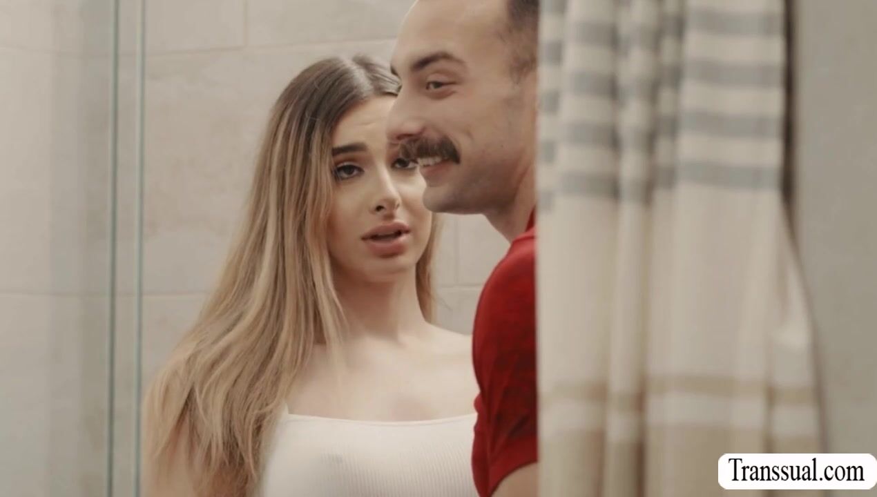 Busty TS babysitter is doing laundry while her boss is getting horny while shes bending over.After that,her boss starts fucking her ass so hard and then they move into the bathroom and she lets him lick and fuck her ass again.