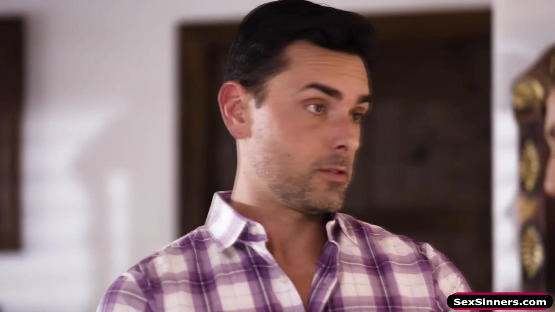 Guy cheats with his busty mistress.He sucks her big boobs and gets his big cock deepthroated.He bangs the babes shaved pussy and before he can finish his big tits brunette wife comes home.He distracts her by fucking her so his mistress can leave