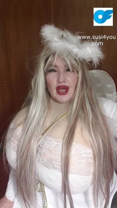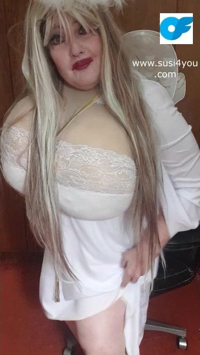 Ever seen sucah angel haha Susi is teasing you in a costume of an angel she i sshowing her big cup k boobs and wants you to lick her fat nipples she is taking off clothes fuck me and i am so horny putting lush in pussy.