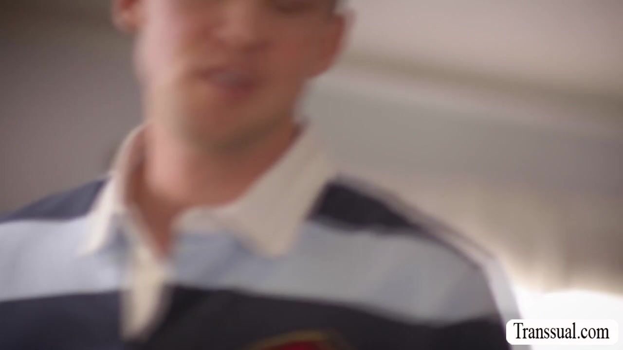 Stepbro hears his Shemale stepsister in her room talking dirty on the phone.He enters her room and he then throats her hard shecock passionately.In return,her stepsister suck his cock too and they bareback each others tight ass.