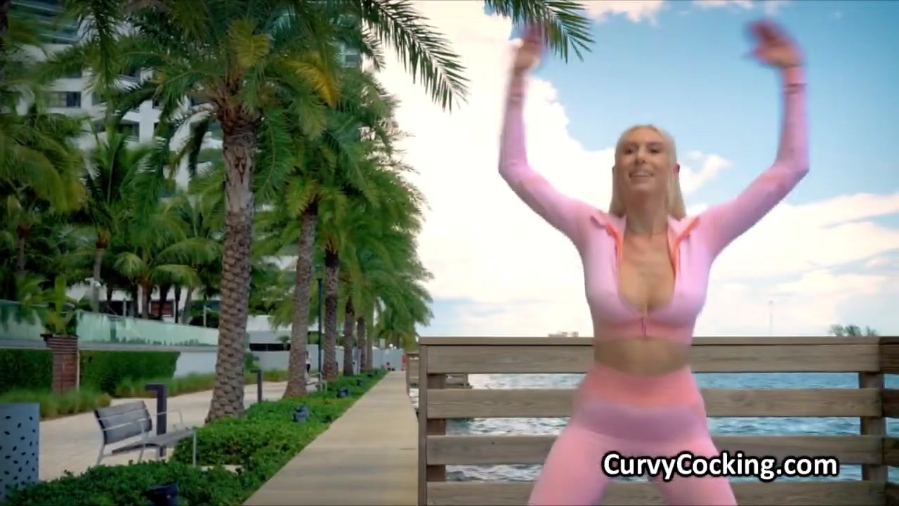 Kay is enjoying her time on the sun while stretching but her tits are out. No wonder that the first dude tried to pick her up.. successfully.