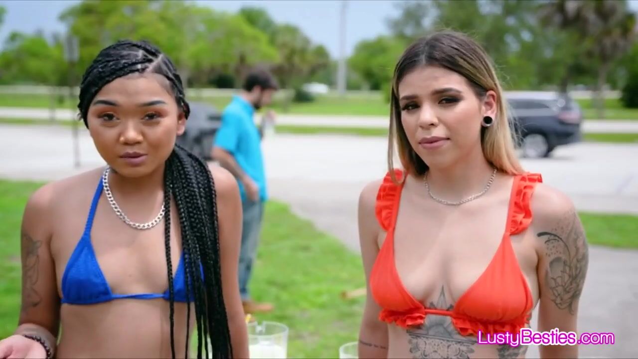 Interracial bikini besties sharing dick in foursome