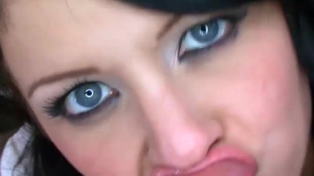 brunette swallows cock bigger then her face