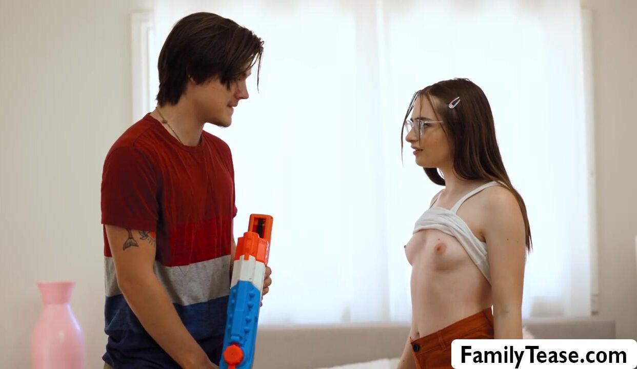 Busty milf Sophia Locke catches stepdaughter Reese Robbins and stepson Tyler Cruise flirting by showing off her tits and whipping out his cock. Soon, the stepsiblings start exploring so Sophia decides to intervene and teach them how to fuck in threesome.