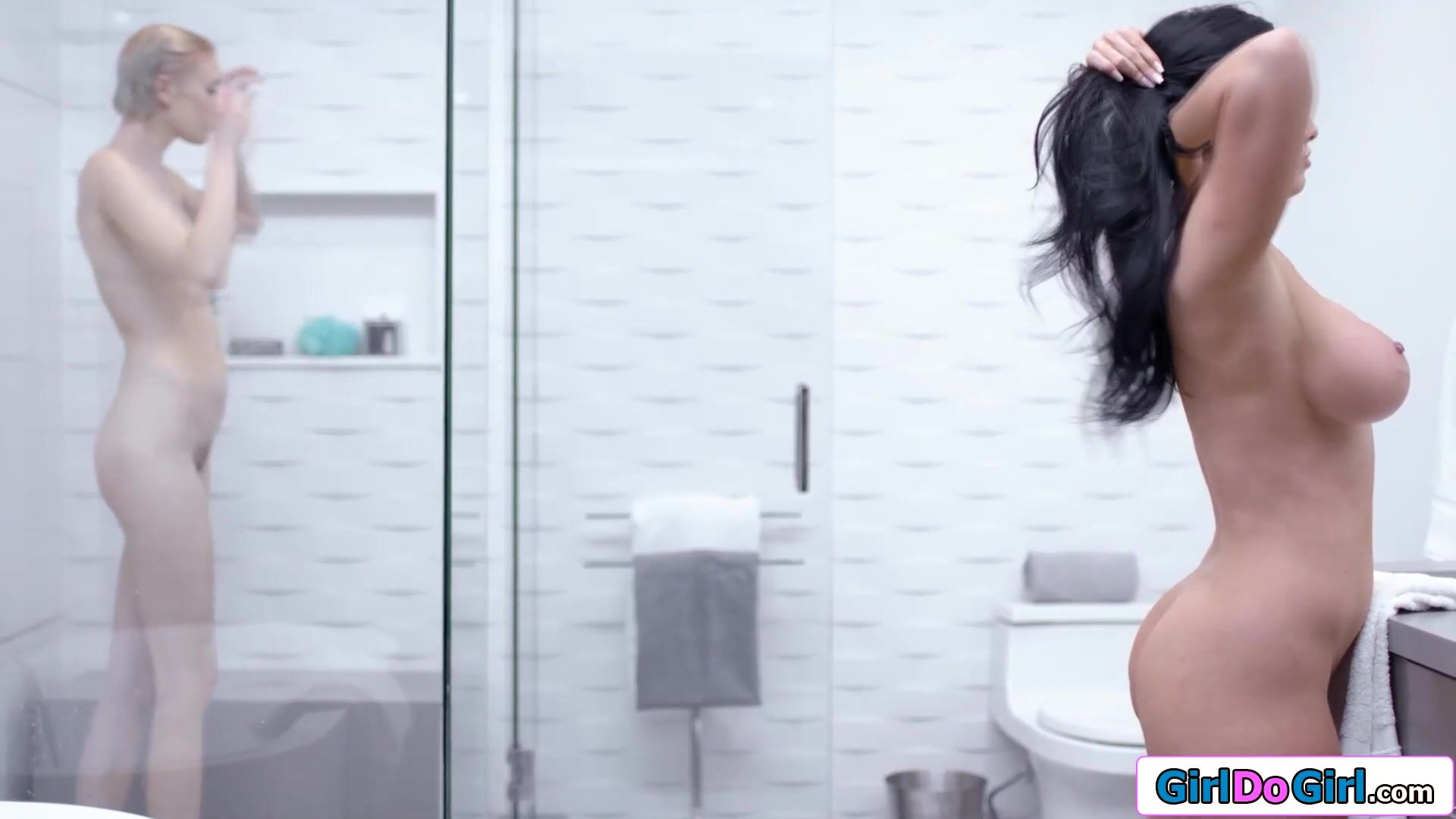 Small tits teen pussy licking a petite busty milf in shower