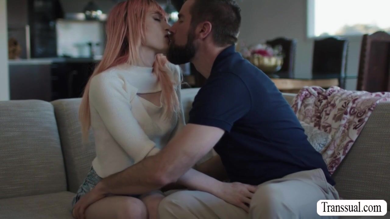Stepdad comforts his Trans Stepdaughter because she looks so tired.They start kissing each other on the couch and he then licks her ass to makes it wet.In return,his TS stepdaughter throat his dick and lets him fuck her wet ass so deep and hard.