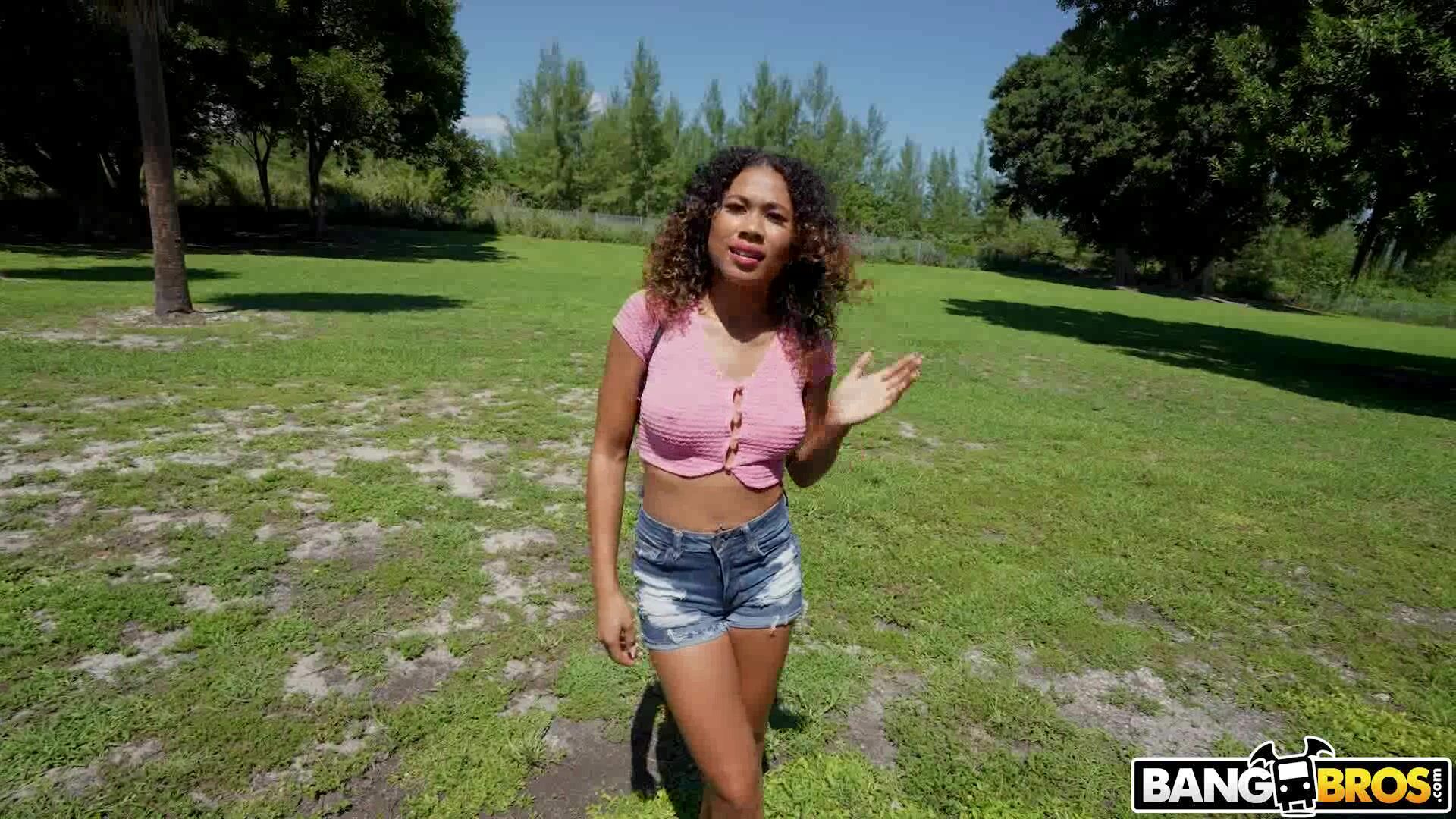 Black girl flashes her tits for the money