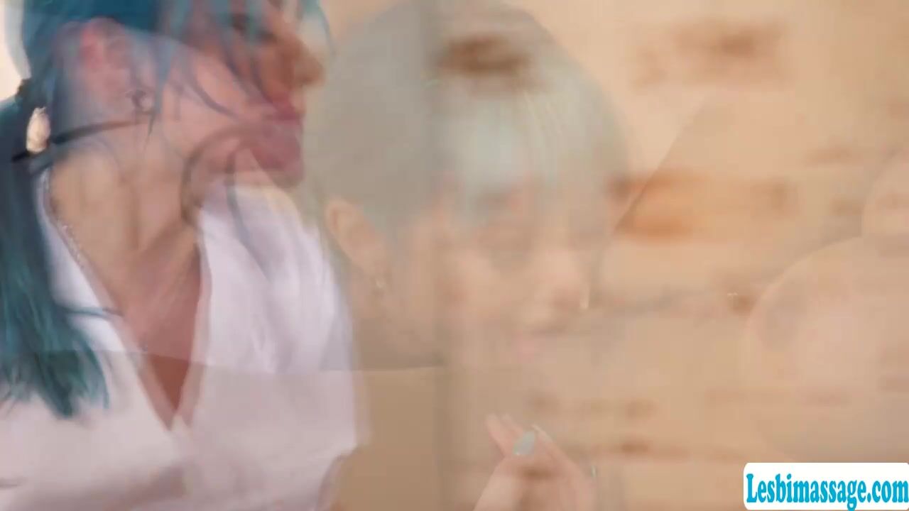 Bride Ebony gets her pussy massaged and licked by masseuse