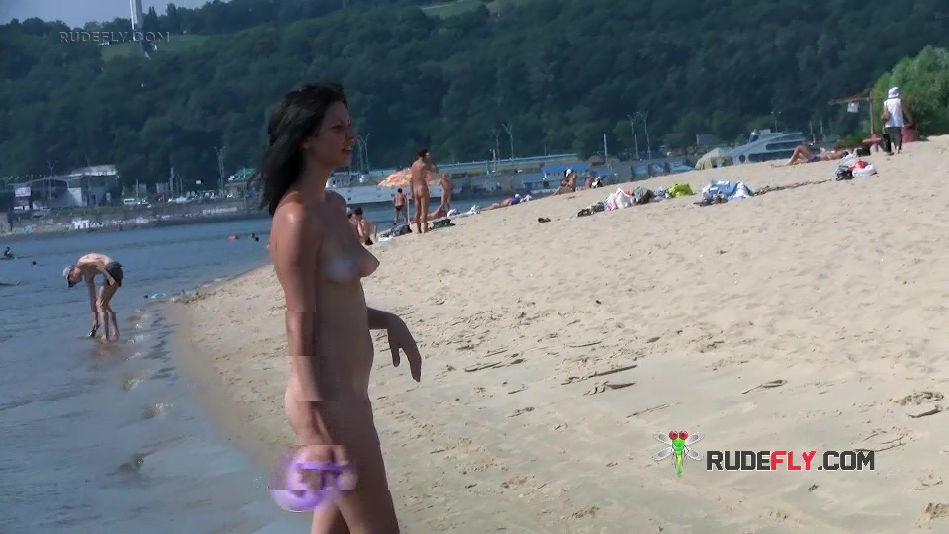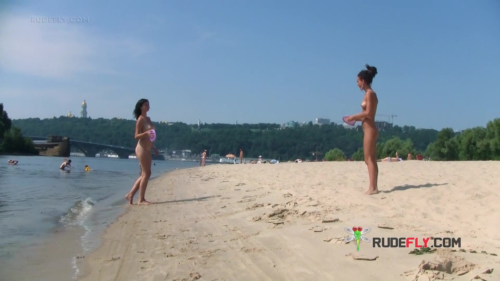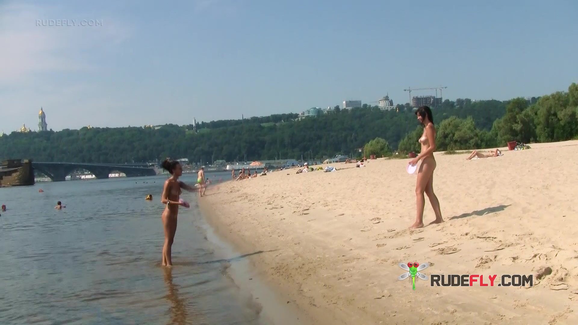 One gorgeous nude beach girl gets joined by her friend and we get to watch them sitting there