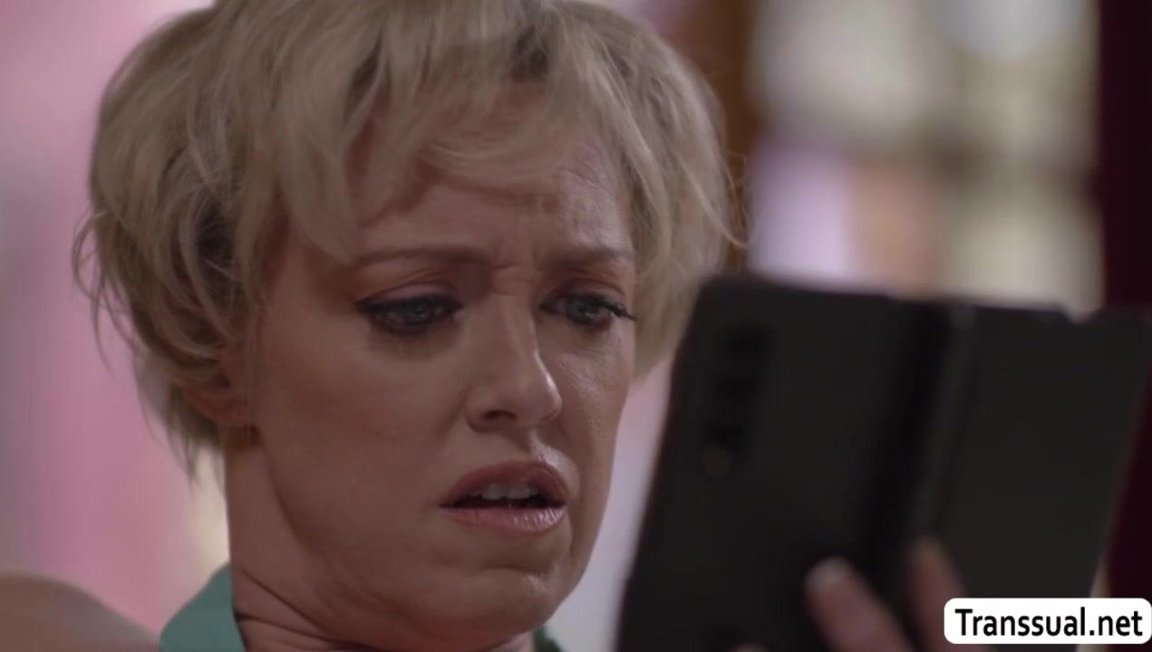 Busty MILF is on the couch masturbating her pussy while watching porn.After that,her TS neighbor fucks her pie and instead of getting mad,she throats her hard tranny cock passionately.In return,TS shemale neighbor fucks her wet pussy so hard.