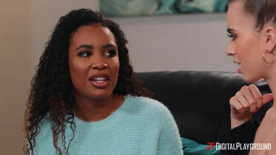 Busty ebony and white lesbians cant stop licking their shaved pussies