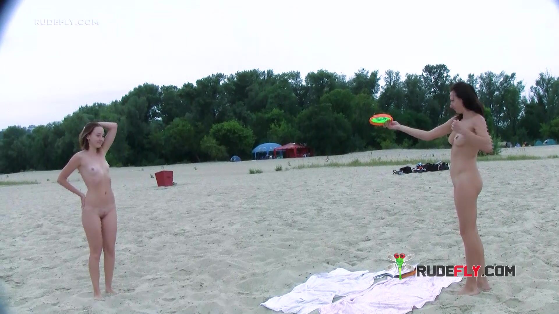 Beautiful brunette is a young nudist that is joined by her friends