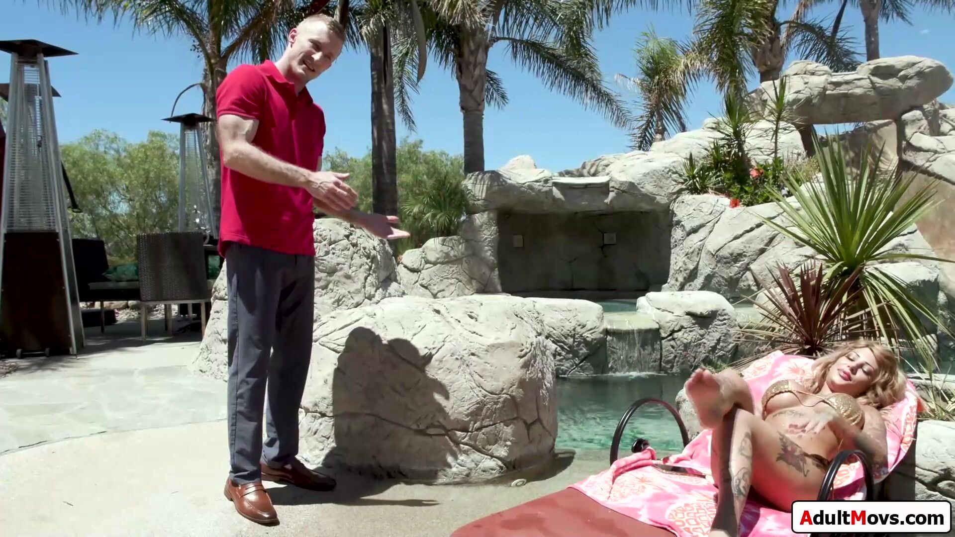 Busty tattooed Kitana Montana has a thing for married men and seduces her stepsis husband.She deepthroats his big cock outdoors and in the pool she gets her boobs sucked.The big tits blonde dutch babe gets her wet pussy licked and rides on his dick