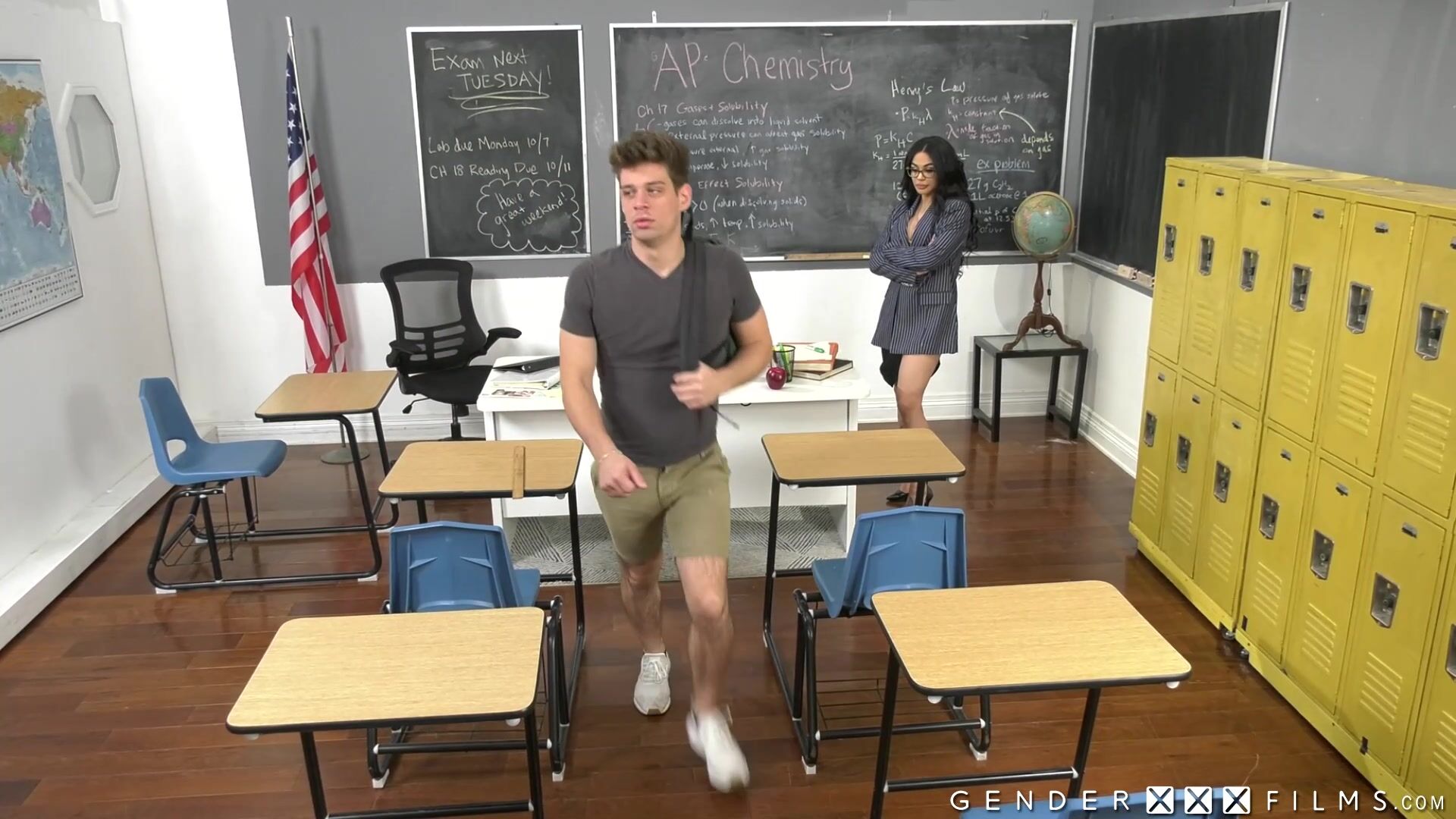 My teacher is so strict on me, its nuts. I already failed my exams three times before. This time I am going to fuck my way through the test. I dont care that she is a hot transgender and actually has a massive dick. Let's try to stick my dick where the sun dont shine.