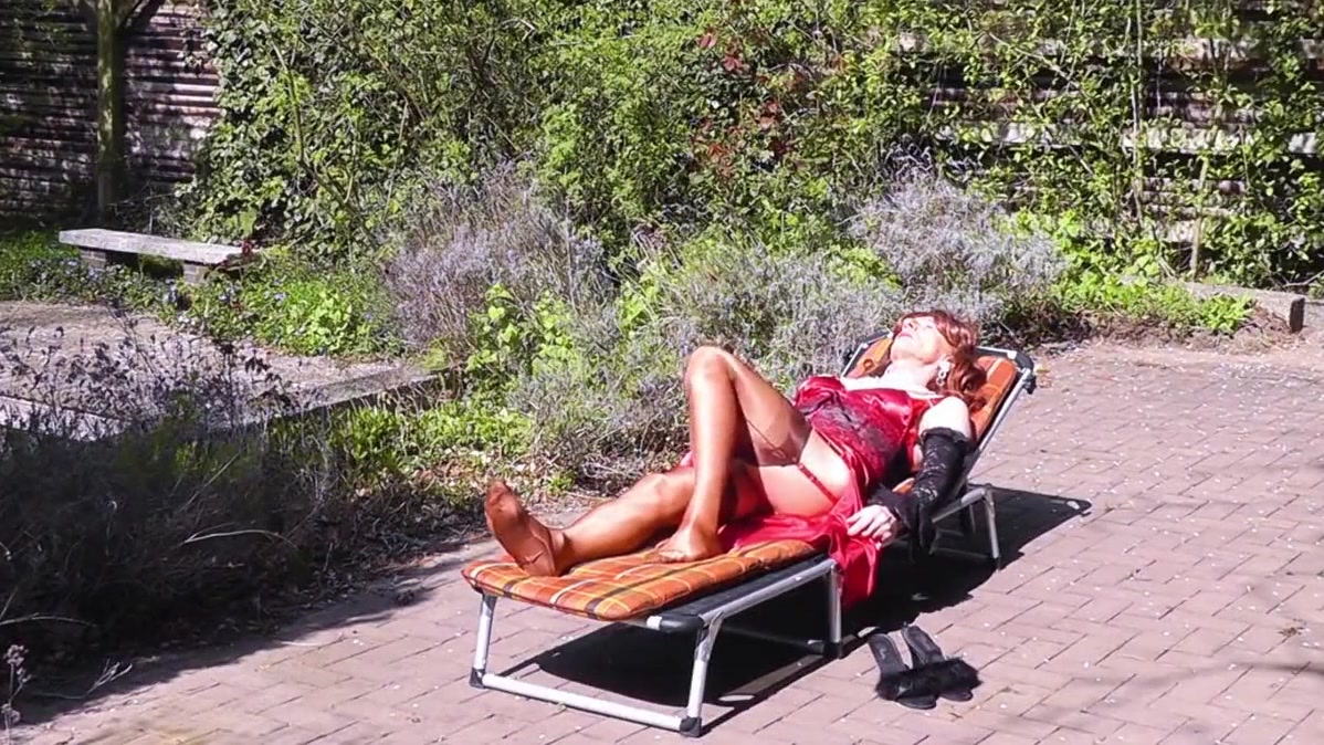 Sunbathing in Nylon Stockings & Satin
