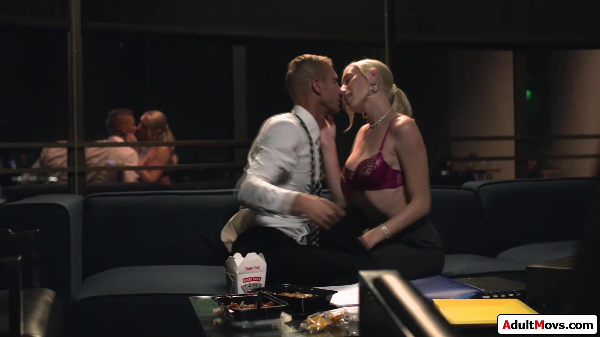 Boss cheats with younger blonde intern and the old and young couple kiss.He sucks the babes tits and masturbates her while shes sucking his big cock.The tall busty cutie spread to get her wet pussy licked.She climbs on his hard dick to fuck him