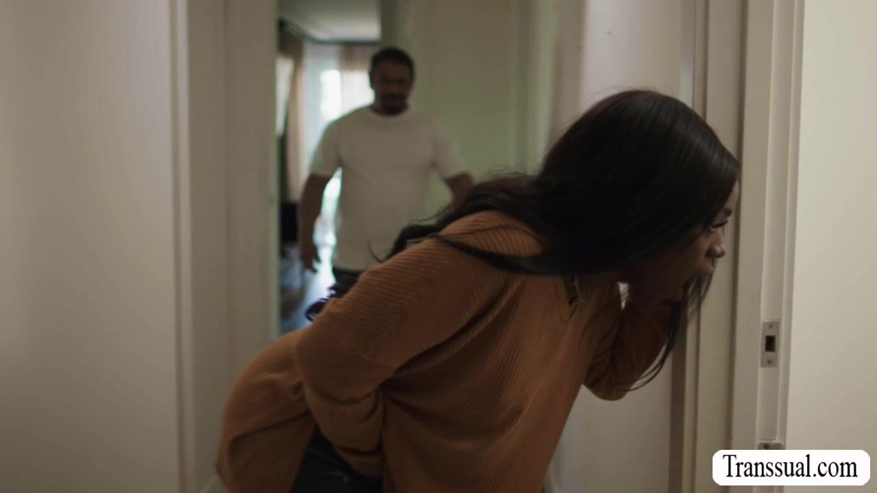 Thirsty shemale gets her wet ass toyed and fucked by roommate